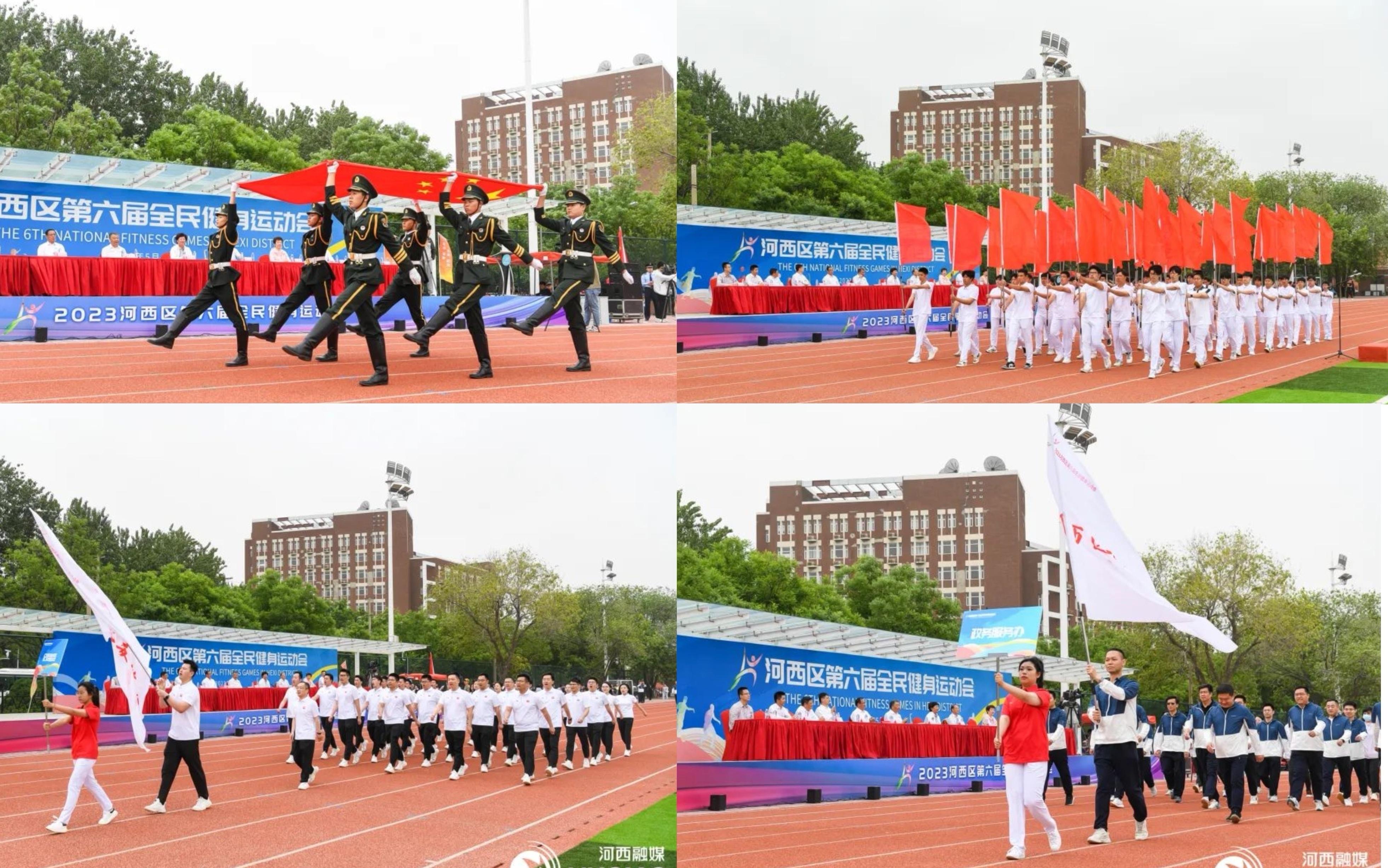 开幕式仪式上,国旗飘扬,国歌嘹亮。运动员代表、裁判员代表分别宣誓,体育人代表宣读文明体育倡议书。活动中,天津市河西区青少年儿童带来足球操、篮球操、排球操和体育舞蹈等精彩文体展演,特色鲜明、活力四射。在校大学生和轮滑、轮舞队员带来健身操表演,用青春活力和蓬勃朝气燃爆全场。老年人携太极扇和柔力球表演亮相现场,静中有动、刚柔并济,展现了河西老年人乐享夕阳的幸福生活。河西区中小学体育教师代表队带来广播体操展示,精神饱满。天津歌舞剧院演员及全区各行各业职工代表唱响原创歌曲《爱在河西》,带领大家一同感受河西人民对美好健康生活的期待。随后,全体合唱《歌唱祖国》响彻全场、振奋人心。(吕兴龙、李亚博)