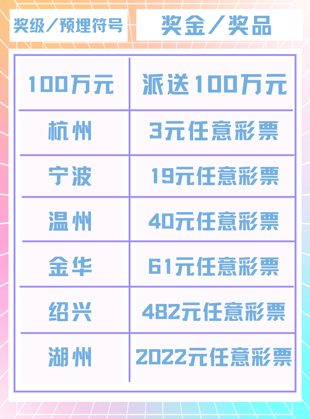 亚博体育,亚博体育APP,亚博体育下载,亚博体育登录,亚博体育注册,亚博体育平台/亚博体育官方网站为用户提供足球、篮球、电竞等丰富赛事投注,支持APP下载、注册登录,一站式享受安全便捷的体育娱乐体验。活动期间,凡在浙江省体彩实体店购买“为中国力量加油 亚运会”主题即开票,只要中得指定奖级或刮出指定预埋符号,即可获得指定奖金或奖品。具体奖励标准如下: